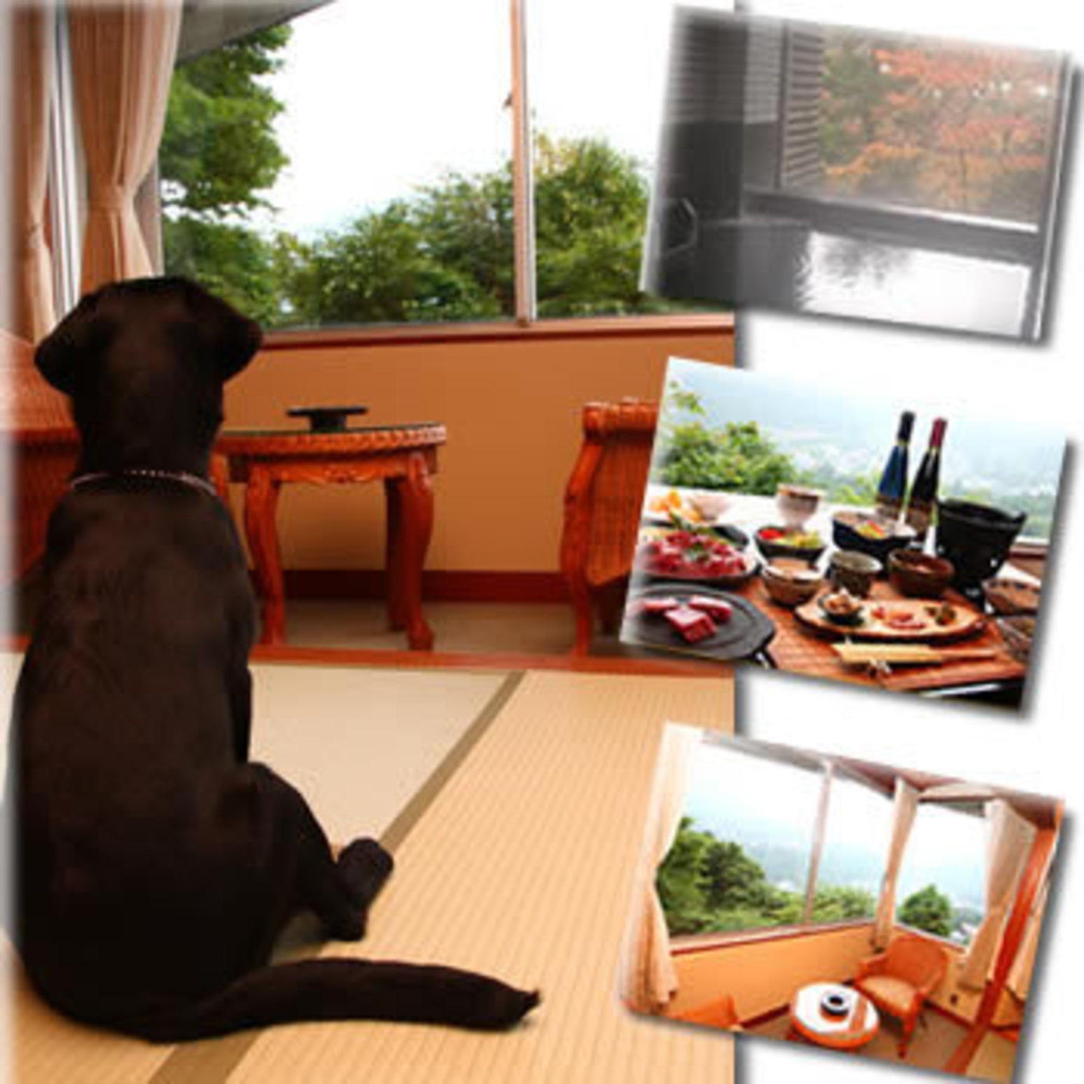 閑静な別荘地内にあり、ワンちゃんのお散歩コースに事欠かず、ススキの原など周辺の観光スポットへのアクセス◎。ワンちゃんを連れての旅には恵まれたロケーション。ゆとりあるつくりが自慢の本棟と純和風つくりの別棟とあり、お部屋のタイプも和室、洋室から好みにより選べます。内風呂のほかに貸切専用の露天風呂もあります。
