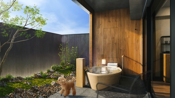 ワンちゃんと泊まれるお部屋は、プライベート感を大切にした全4室。ワンちゃんはホテル館内を通らずにお部屋に入ることができ、お部屋の専用デッキには、露天風呂とワンちゃん用のシャワーや洗い桶を備えています。 ワンちゃんと飼い主さん、どちらも快適に過ごせるための設備とサービスを提供してくれるお宿。安心できる旅が過ごせます。